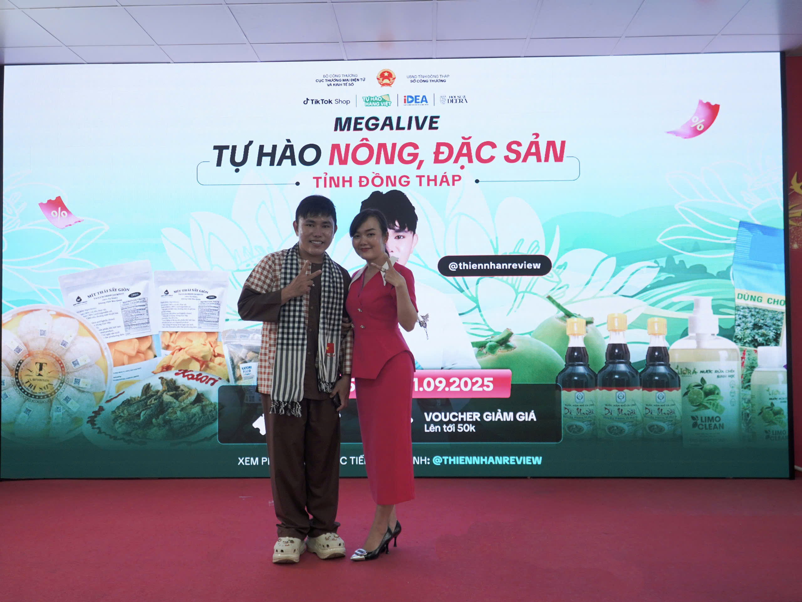 Với sự đồng hành của Bộ Công Thương, Cục Thương mại Điện tử và Kinh tế số (iDEA), cùng Sở Công Thương tỉnh Đồng Tháp, phiên MegaLIVE đã mang đến một không gian mua sắm trực tuyến sôi động, nơi người tiêu dùng được khám phá và ủng hộ những sản phẩm chất lượng cao của quê hương Đồng Tháp.